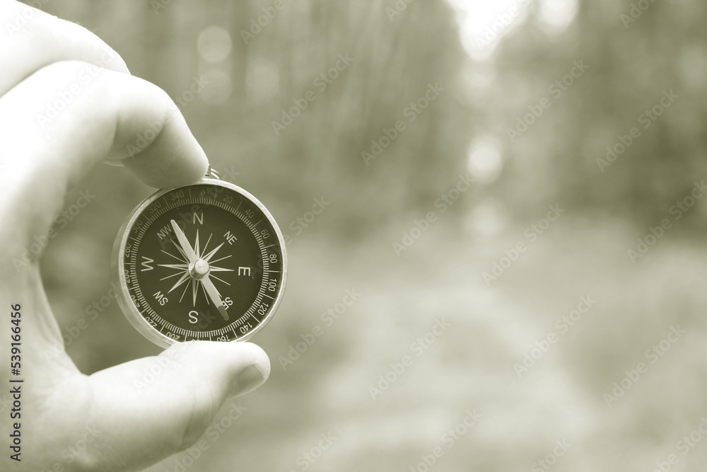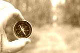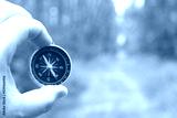 Old classic navigation compass in hand