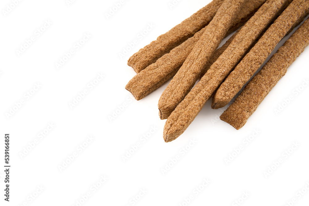 Creative layout made of crackers sticks on the white background. Food concept. Edible snack dry sticks with salt on white background. Straws, sticks crackers.