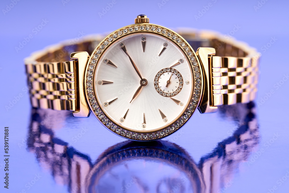 classic chronograph wristwatch. Swiss golden wristwatch. luxury fashion watch stainless steel chrome with the geometric dial. Luxury watch. With clipping path. Gold watch. Women watch.