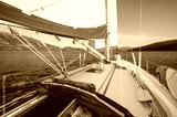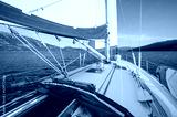 View on sailboat bow, tilted by the wind