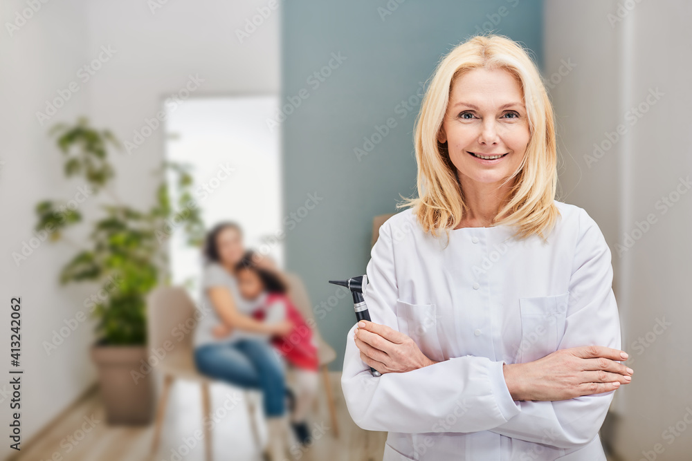 Confident paramedics team standing near their ambulance car with crossed arms. Personnel of emergency service