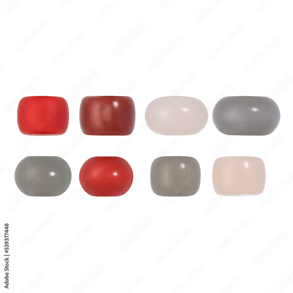 Oval and rectangular natural semi-precious stone beads for advertising and design closeup on a white background