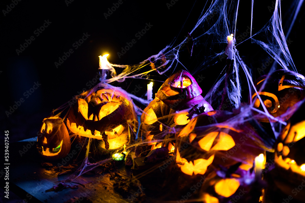 Halloween Spooky Dark Background Decoration with Jack "O" Lanterns