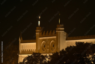 Poland, Lublin, royal castle at night.