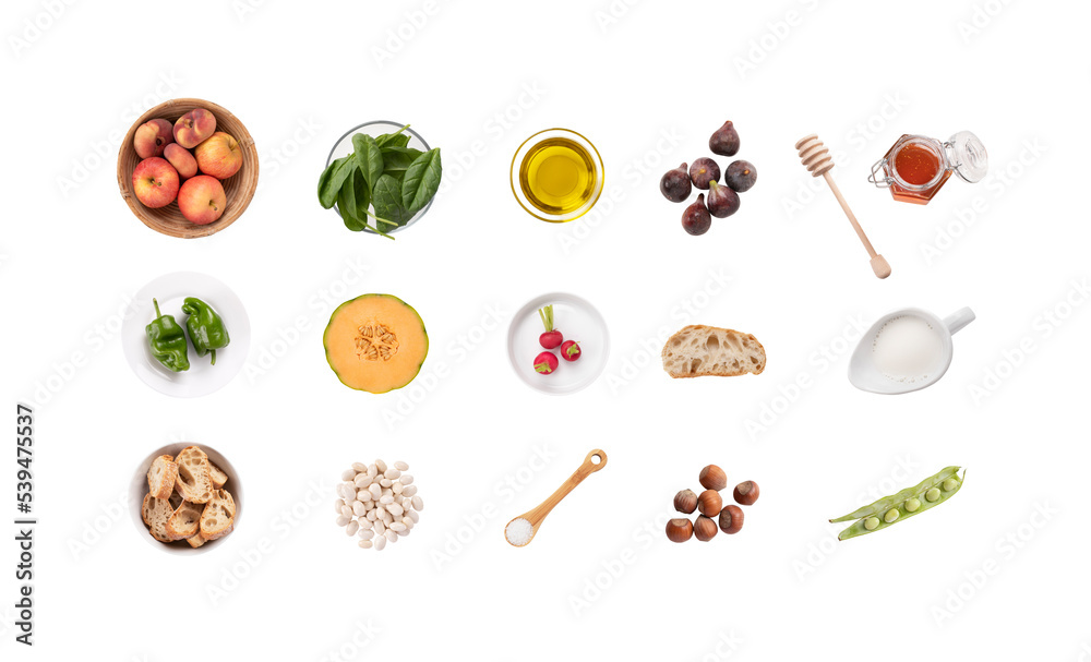 Food ingredients isolated. Transparent background. Cooking ingredients, recipe. Cook book. Collection. Product.