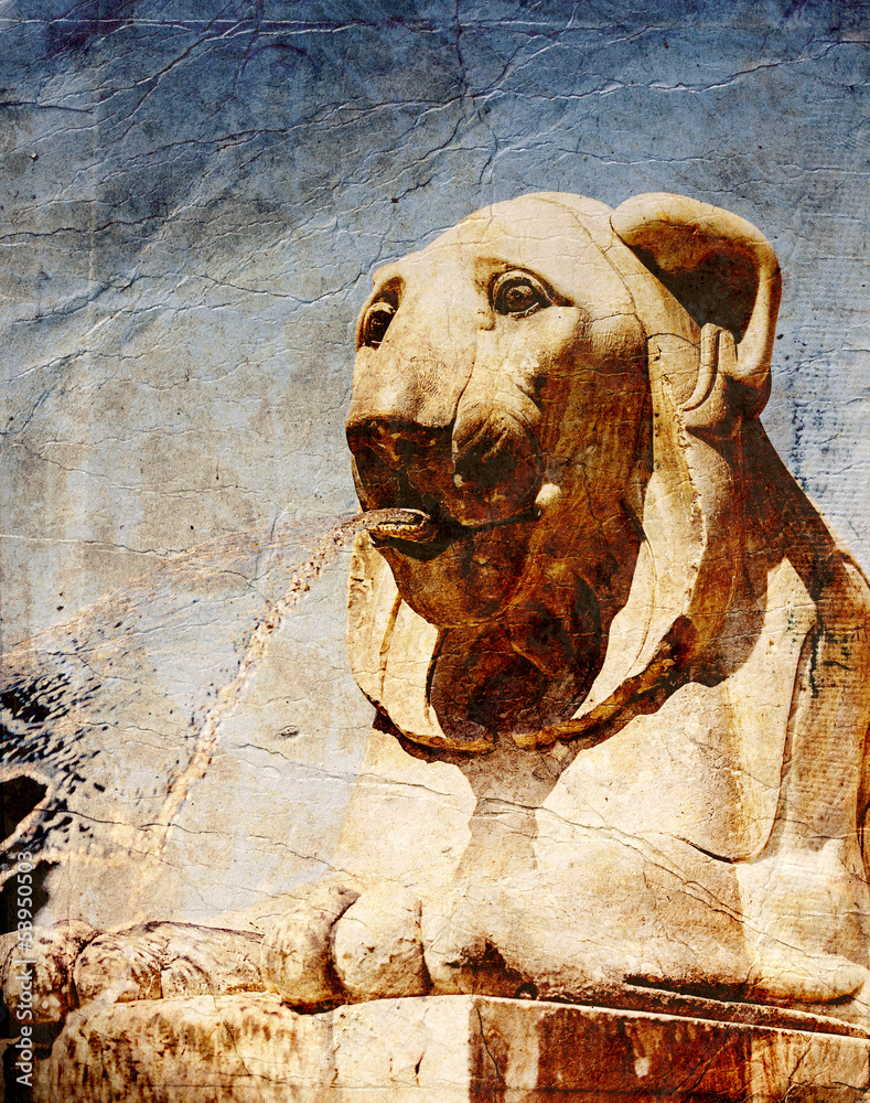 fountain on piazza dei Popolo. Rome. Artistic retro style.
