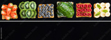 Collage of sandwiches with fruit, berry and vegetable on the black background. Copy space. Top view.