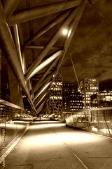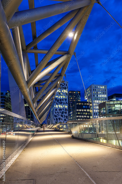 Oslo skyline modern city architecture buildings with a bridge at Barcode District by night portrait format in Norway
