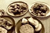 The closed up of European food such as chicken bread ham on table in restaurant.