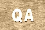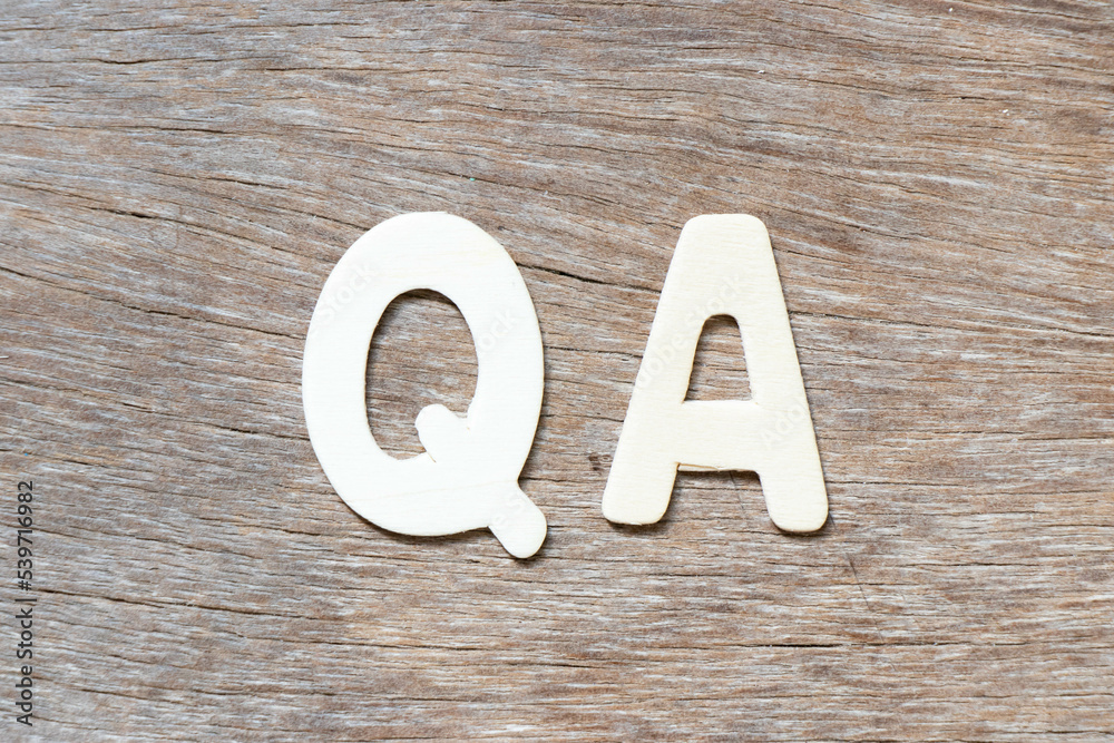 Alphabet letter in word QA (abbreviation of quality assurance or question and answer) on wood background