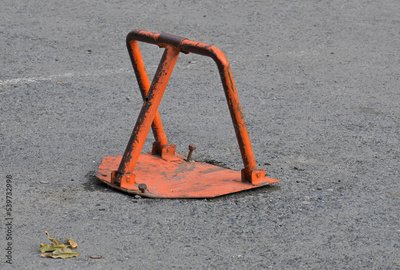 Stop barrier at the parking lot on an autumn day