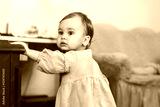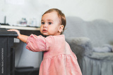 Baby girl learns to walk around the house