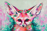 Oil fox portrait painting in multicolored tones. Conceptual abstract painting of a fennec muzzle. Closeup of a painting by oil and palette knife on canvas.