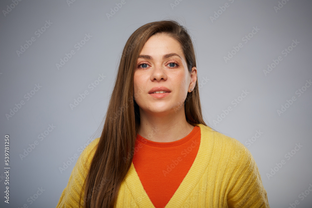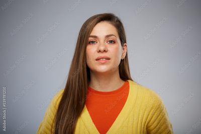Isolated studio portrait of woman in yellow.