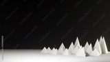 3D triangles stacked on black background with 3D rendering designer.