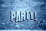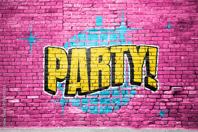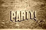 Party Disco Comic Style Bubble Graffiti Lettering on Brick Wall