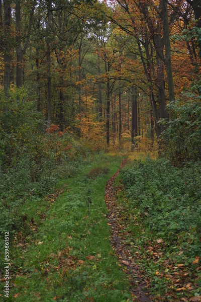 Leśna ścieżka przez las jesienią