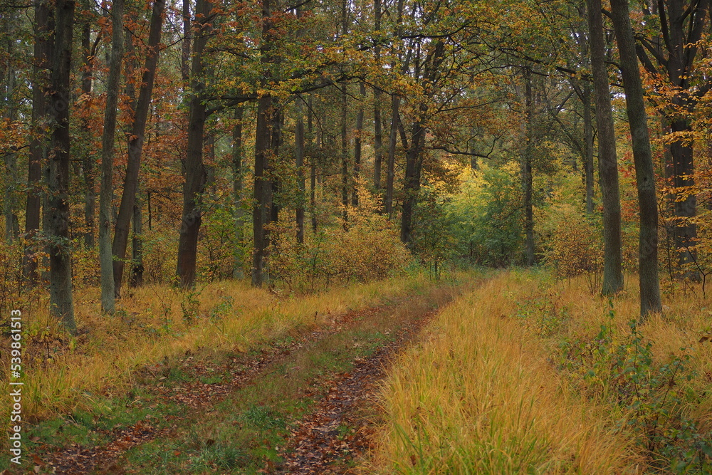 Leśna ścieżka przez las jesienią