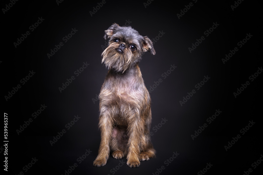 Small and cute Griffon dog close up portrait on dark background close up portrait on dark background