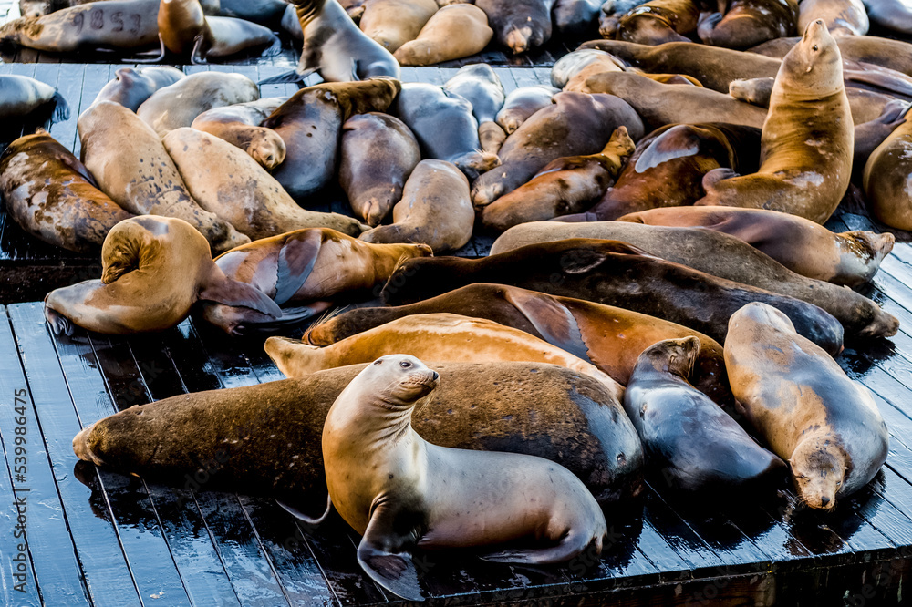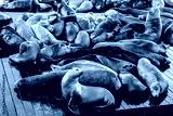 Fur seals on the coast of the Caribbean