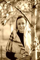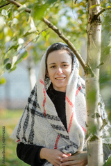 a young woman under a birch tree in the park
