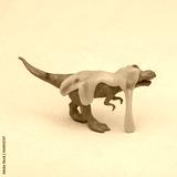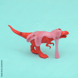 Creative layout, toy tyrannosaurus with slime on blue background. Visual trend. Fresh idea. Concept pop