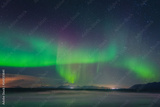 Beautiful colorful northern lights captured in the Lofoten Islands in northern Norway.