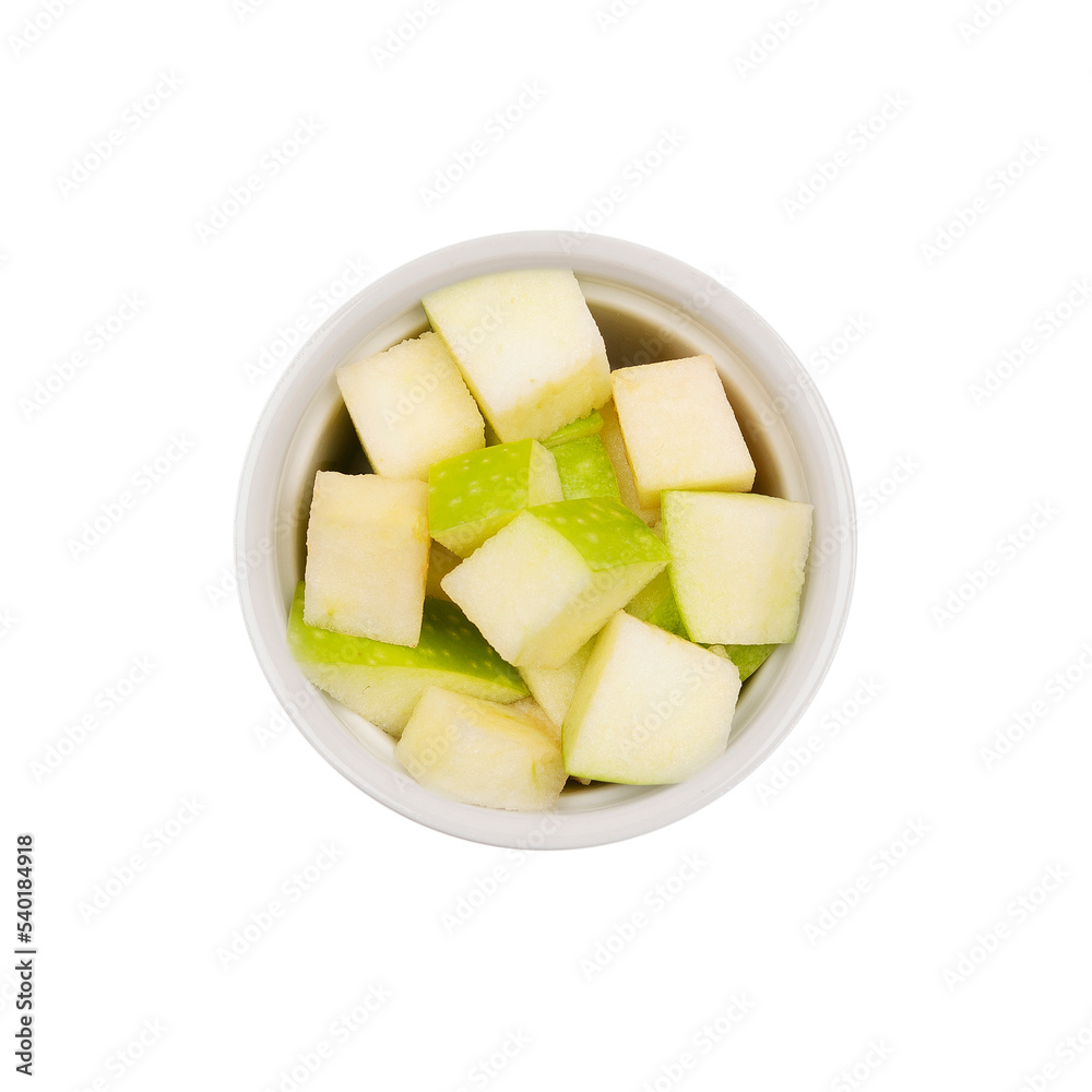 Apple. Isolated. Cake ingredients collection. In a bowl. Top view. Transparent background.