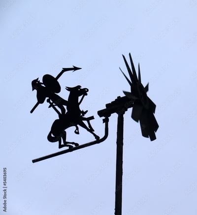 Windrad mit Don Quichotte – Kampf gegen Windmühle