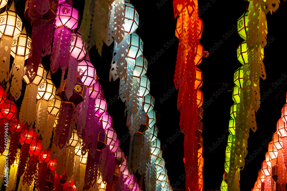 Lamphun town's hundred thousand lantern festival ,beautiful multicolored lamps, Lamphun Thailand