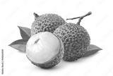 Juicy Lychee with cut in half isolated on white background. Clipping path.