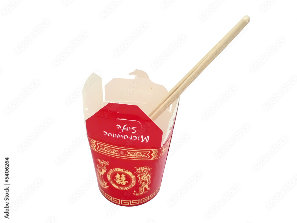 photo of chinese carryout food container with chop sticks
