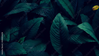 Full Frame of Green Leaves Pattern Background, Nature Lush Foliage Leaf Texture, tropical leaf