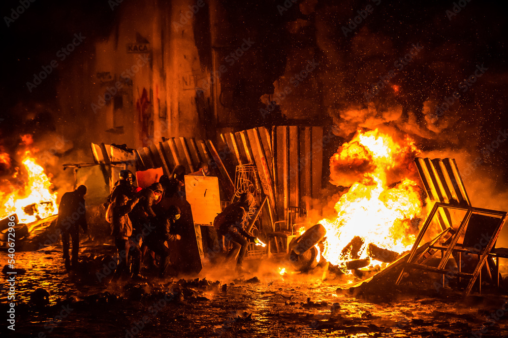 Orange revolution on the Maidan in Kyiv, Ukraine. Street riots and protests. January 2014