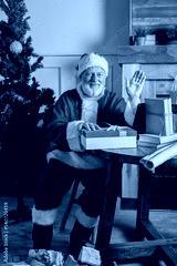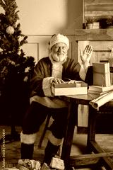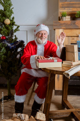 santa claus with christmas gift box at home