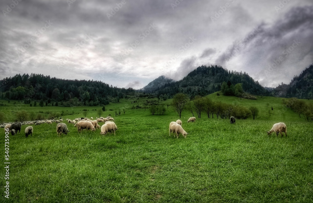 Owce na zielonym pastwisku. Pieniny.
