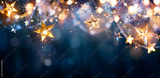 Christmas Lights - Stars String Hanging At Fir Branches In Abstract Defocused Background