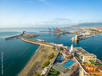 Malaga Aerial View from Gibralfaro Castle. Malaga, Costa del Sol, Andalusia, Spain. Europe.