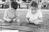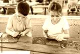 Little children draws scratches at a school yard.