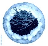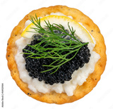 Black Caviar on egg white with Sour Cream and biscuit isolated on white background, Black caviar served on crackers with egg white on white With clipping path.