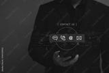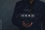 Contact us concept. Business man consulting customers who contact us, call center service, customer consulting service, email, hotline, business contact, digital online business, digital service.
