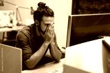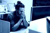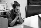 Tired depressed bored businessman frustrated by business failure bankruptcy.