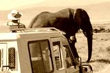 African elephant near a vehicle