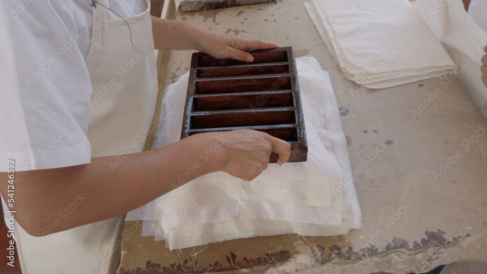 Colombia, Barichara - Paper factory workshop for homemade production of paper - complete process of making the paper sheet from the leaf of the plant - manufacturing and molds for sheets