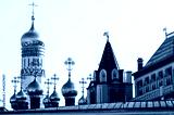 Panoramic view area of the Red Square in Moscow, Russia. View from Kremlin fortress wall