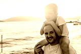 Shot of a joyful father and daugther on the beach. Portrait of a happy father and son spending time together at the beach.