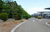 Road markings. Solar panels on the parking place in Provence, France. City life. Copy space.