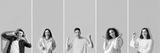 Collage of happy young people on grey background