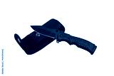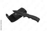 Pocket folding knife isolate on white back. Compact metal sharp knife with a folding blade.