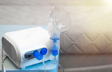 Medical equipment for breathing with a mask. Compressor nebulizer ,inhaler for home use. Breathing problems. Allergy treatment at home.